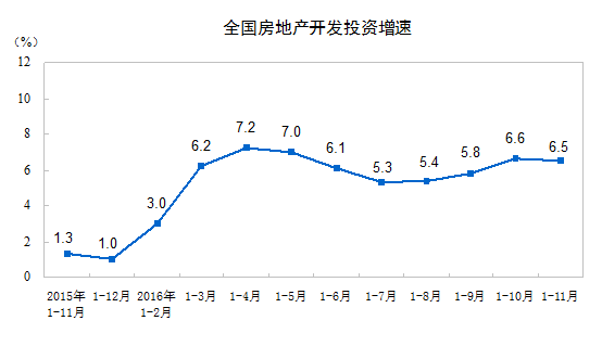 2016年1-11月份全國(guó)房地產(chǎn)開(kāi)發(fā)投資和銷售情況
