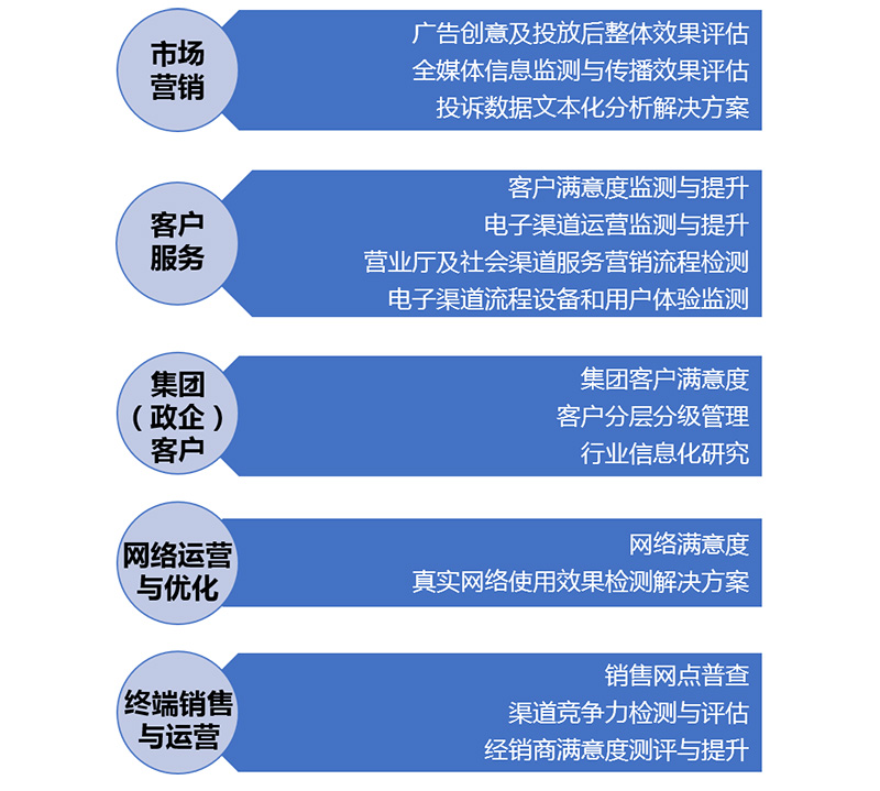 華夏經(jīng)緯在運(yùn)營商研究方面擁有專業(yè)的研究團(tuán)隊(duì)、豐富的研究經(jīng)驗(yàn)及資源,可以為客戶提供市場(chǎng)現(xiàn)狀研究、營銷支撐分析、服務(wù)支持調(diào)查、市場(chǎng)擴(kuò)張研究、數(shù)據(jù)分析和挖掘等覆蓋電信服務(wù)生命周期的研究服務(wù),為客戶提供科學(xué)、精準(zhǔn)的解決方案。華夏經(jīng)緯為通信運(yùn)營商和通訊設(shè)備廠商提供以下方面的研究咨詢服務(wù):